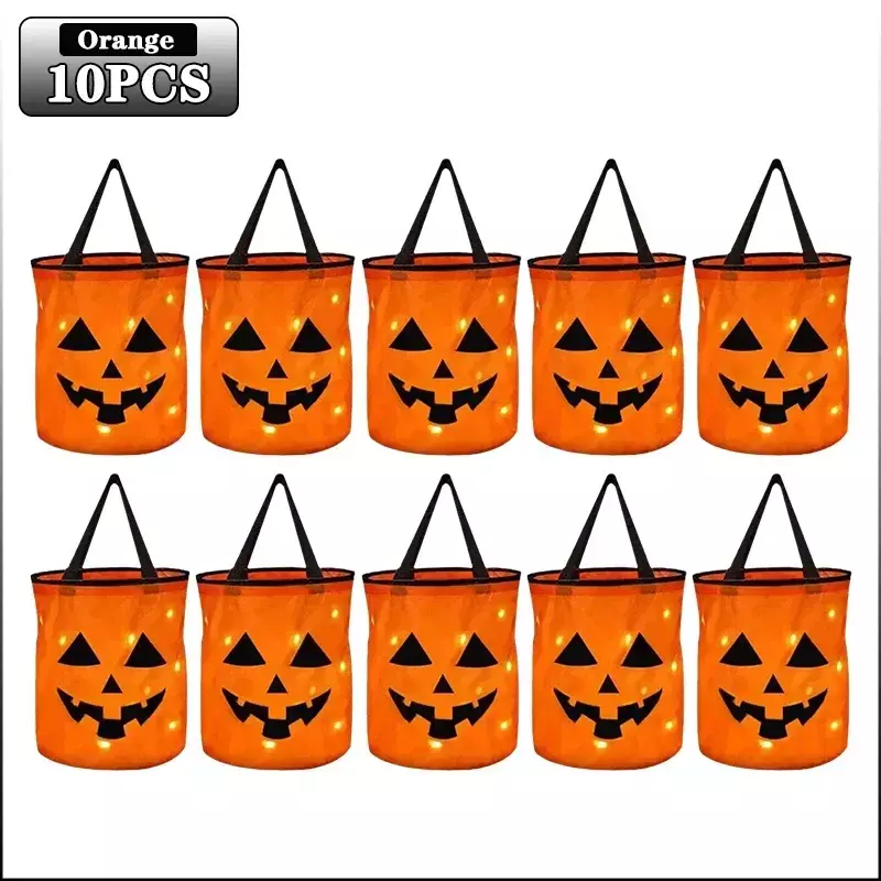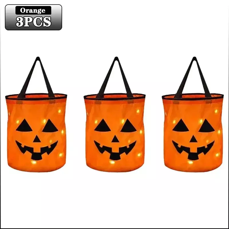 Essas cestas em formato de abóbora sorridente vêm com luzes LED que piscam ao simples toque de um botão, criando uma atmosfera única para o Halloween. Perfeitas para crianças colecionarem doces ou para compor a decoração da sua festa, elas são leves, duráveis e irresistivelmente fofas.