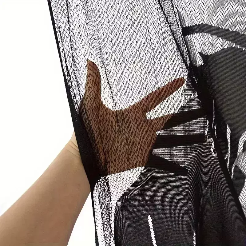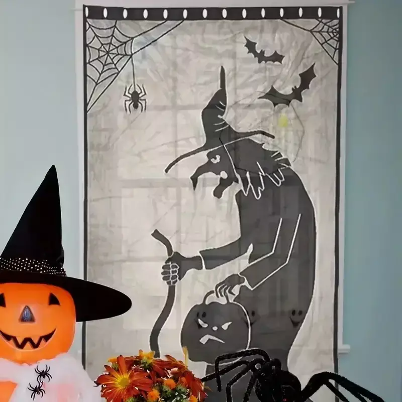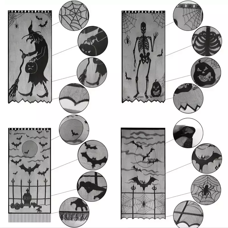 Entre no clima do Halloween e transforme sua decoração com esta cortina de renda temática, perfeita para criar um ambiente assustador e divertido em festas ou até mesmo na decoração da sua casa durante a temporada mais sombria do ano.