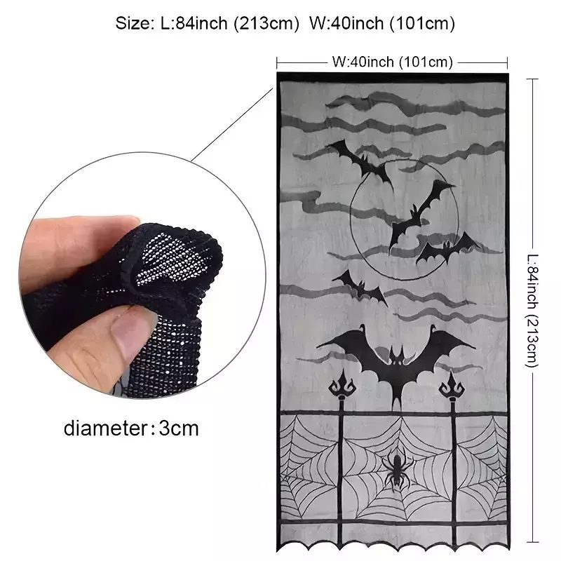 Com a cortina de renda Halloween, sua casa ou festa ganha um clima mágico e misterioso, perfeito para encantar e assustar seus convidados.