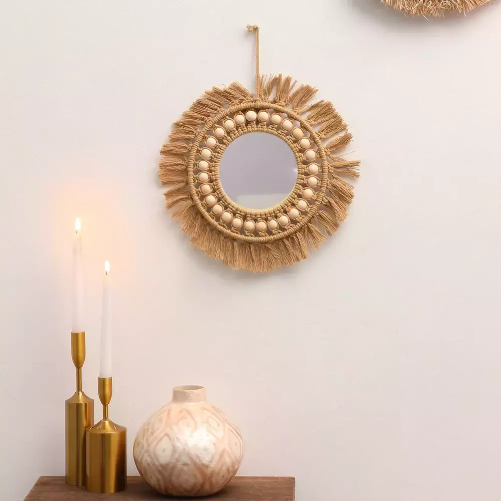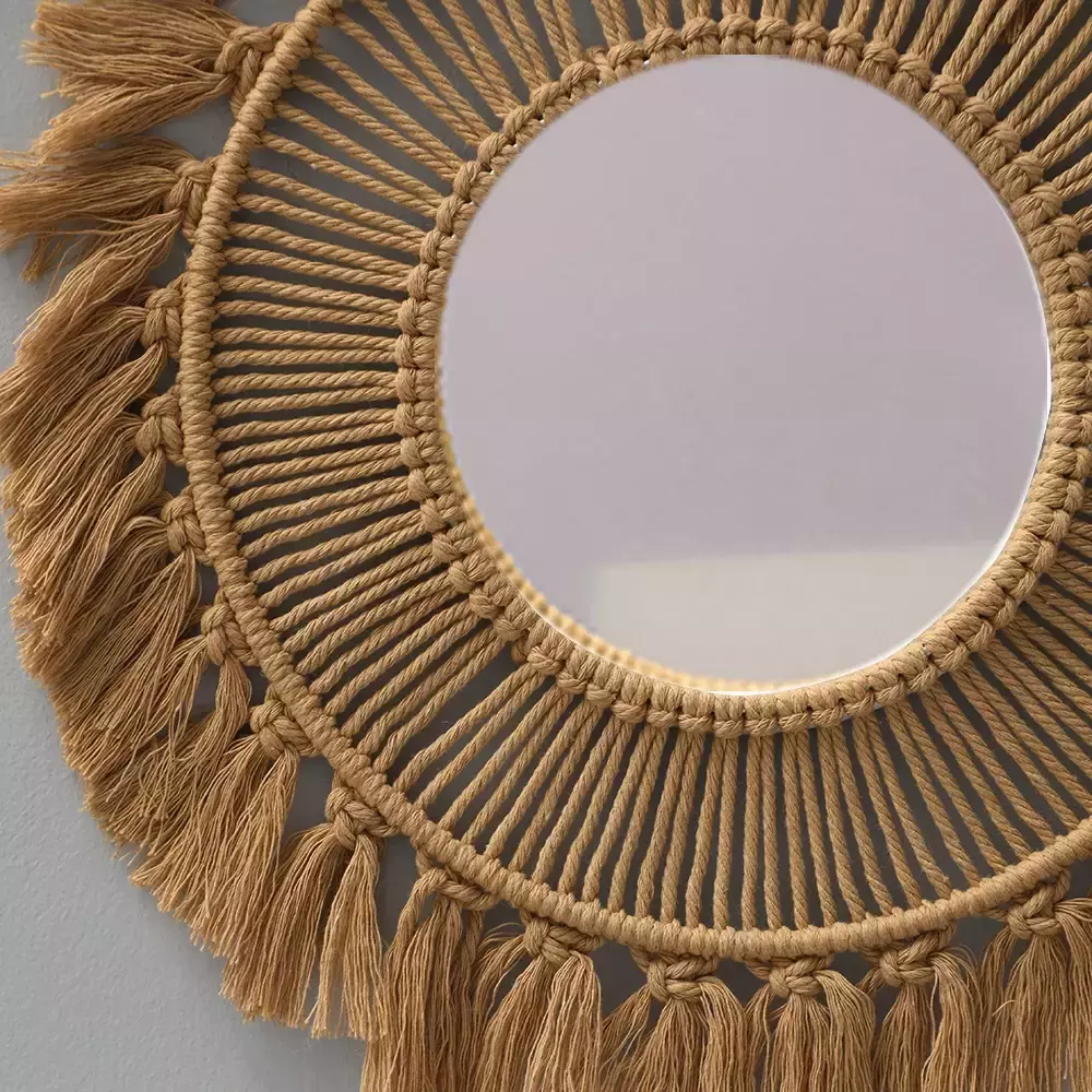 Moldura delicadamente tecida à mão com fios de algodão de alta qualidade, em estilo boho chic.