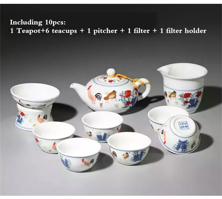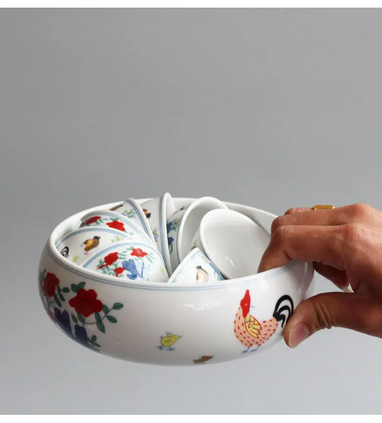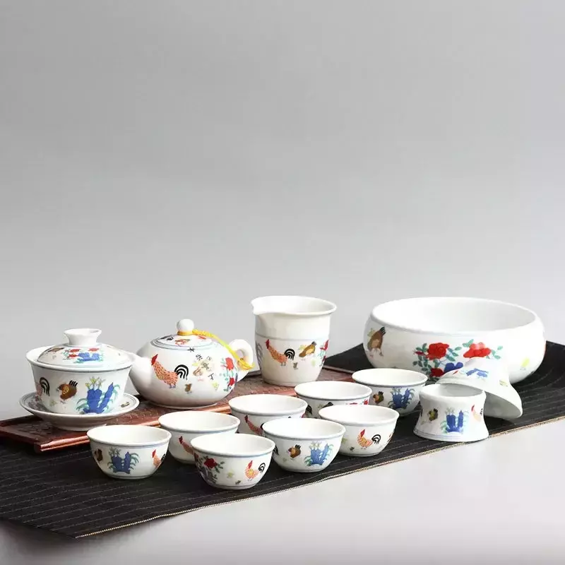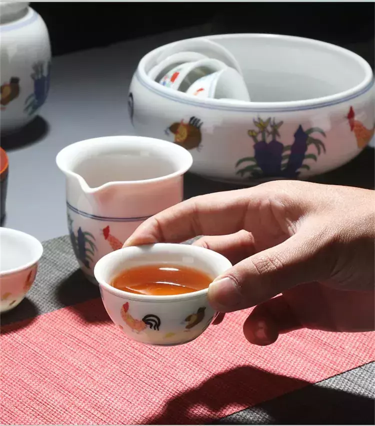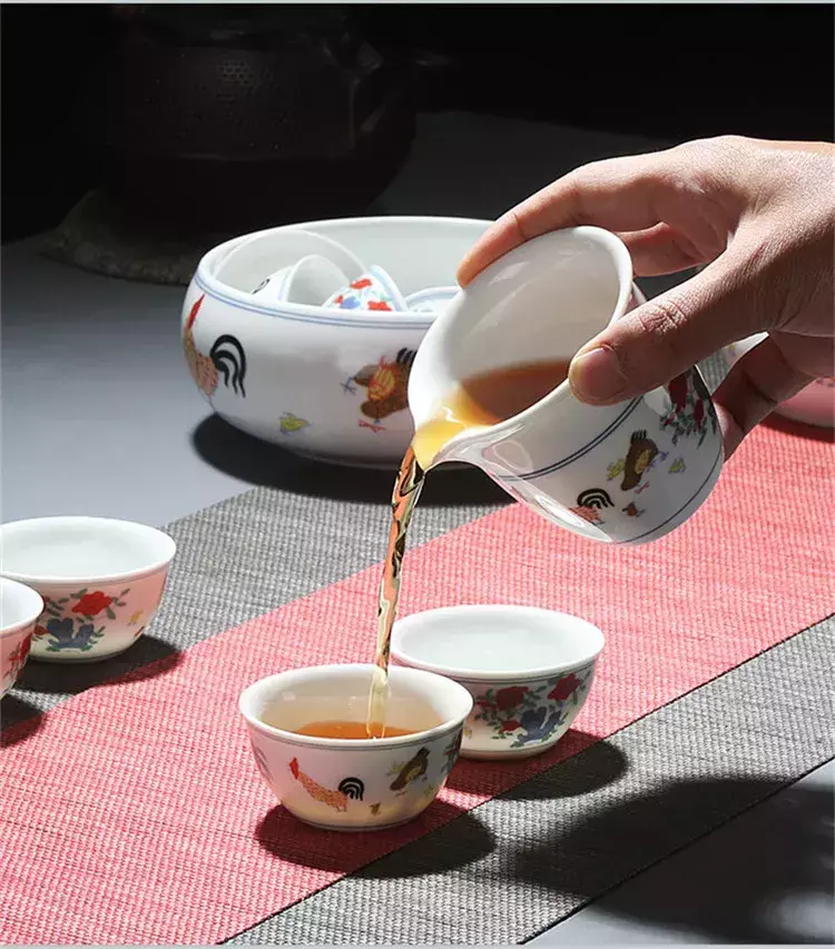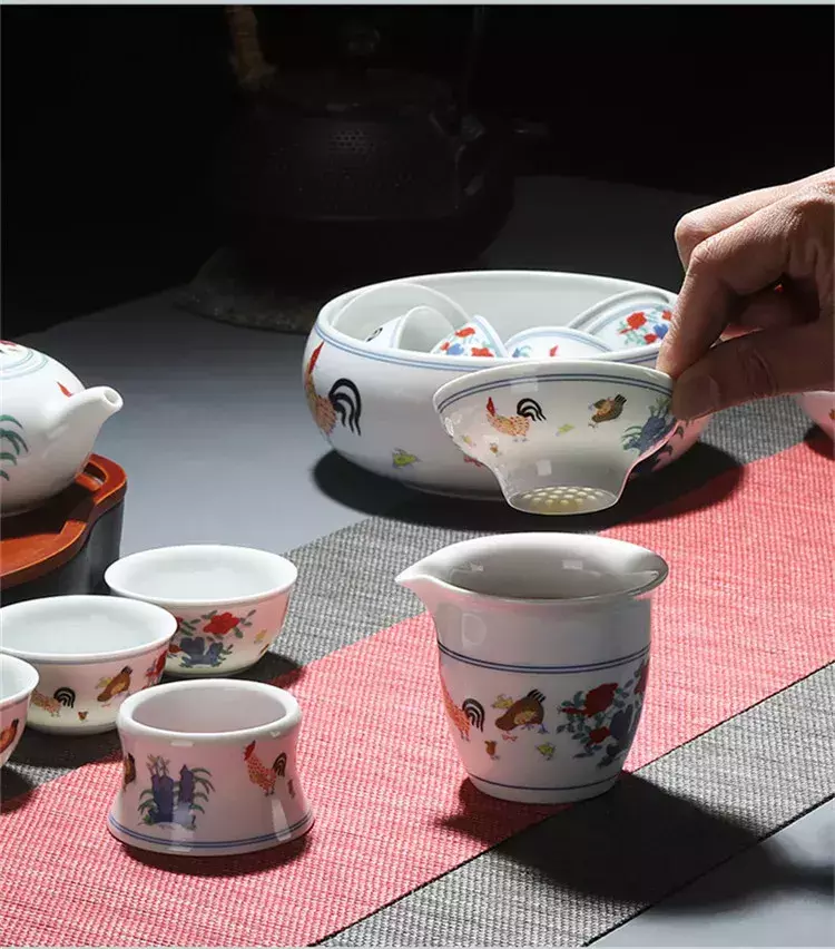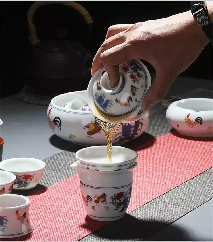 Conjunto De Chá De Cerâmica Chinesa Acessório Tea Wash Archaistic Galo Bule Teacup Bacia De Limpeza