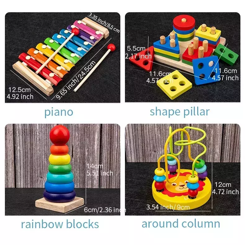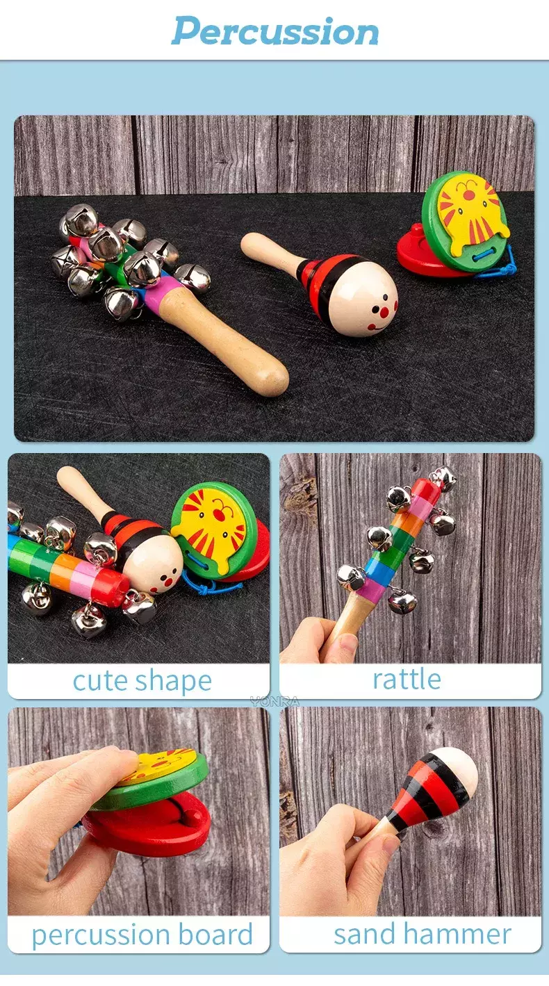 Transforme os primeiros anos do seu pequeno em uma verdadeira sinfonia de aprendizado e diversão com o Conjunto de Instrumentos Musicais Montessori 9 em 1. Feito em madeira de alta qualidade e aprovado pelos certificados CPC e CE, este kit une segurança, educação e entretenimento em cada peça.
