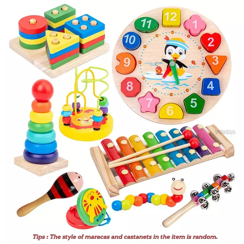 Kit Musical Montessori 9 em 1 de Madeira – Brinquedos Educativos para Bebês e Crianças 🎶🌟