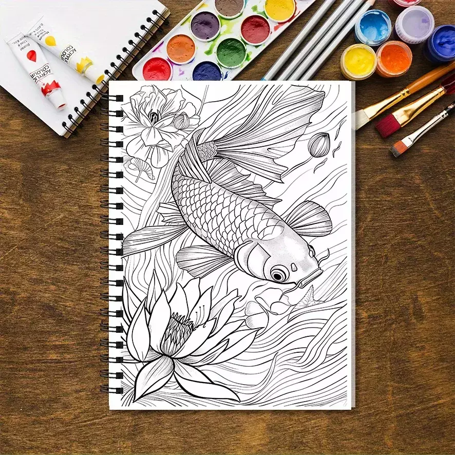Transforme o simples ato de colorir em um ritual de bem-estar com o Livro Koi Fish — onde cada página é um convite à calma, à beleza e ao autoconhecimento. 🌸