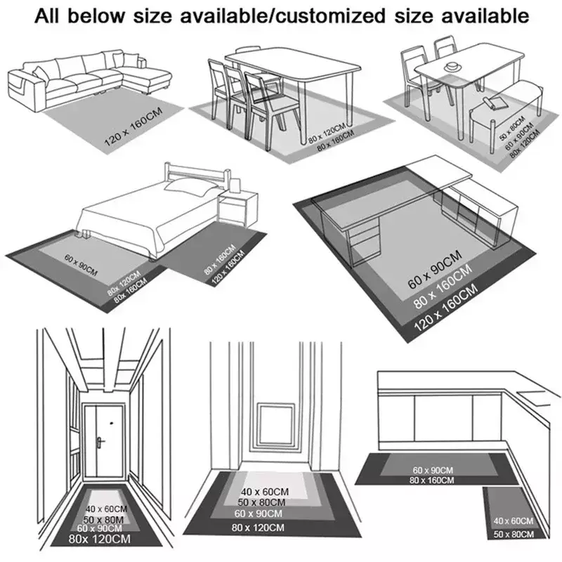 Para se adequar perfeitamente ao seu espaço, o Tapete de Luxo Estilo Europeu Retrô está disponível em uma ampla gama de tamanhos, desde opções menores para espaços compactos até medidas generosas para salas amplas. Com tamanhos que vão de 60x90 cm a 200x400 cm, você pode escolher o tamanho ideal para cobrir o piso da sua sala de forma elegante e funcional. Para necessidades específicas, entre em contato conosco para um tamanho personalizado exclusivo para você.